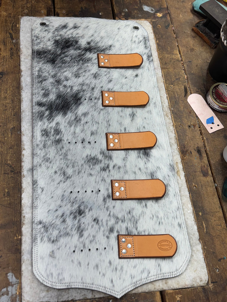 -These buckle holders hold 5 belt buckles and can be personalized with a name at the top.