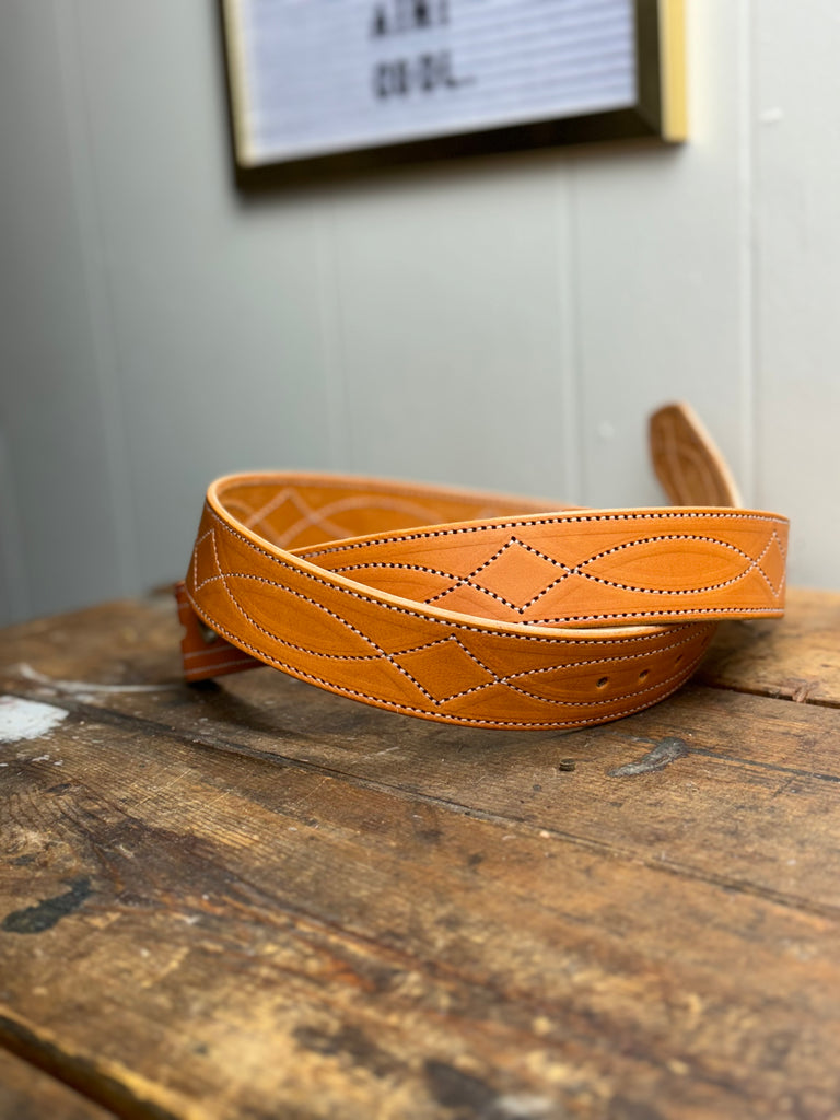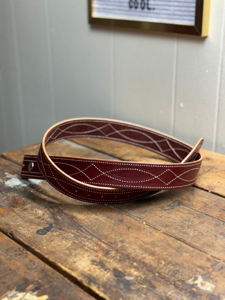 1.5" wide single layer bridle leather belt with decorative "Gunslinger" stitch